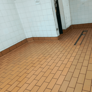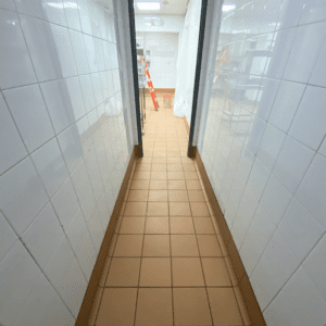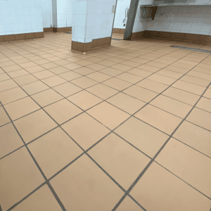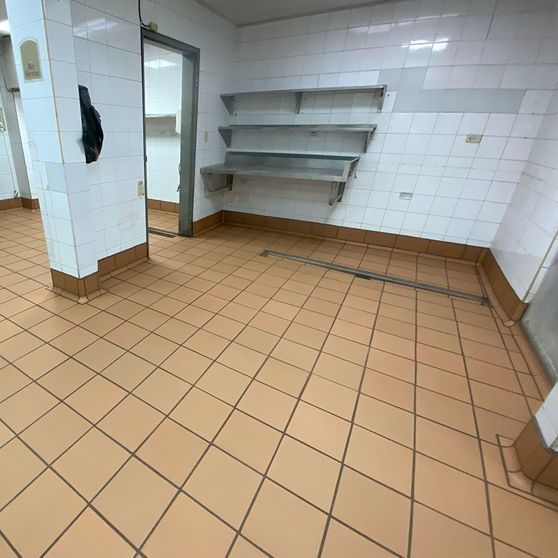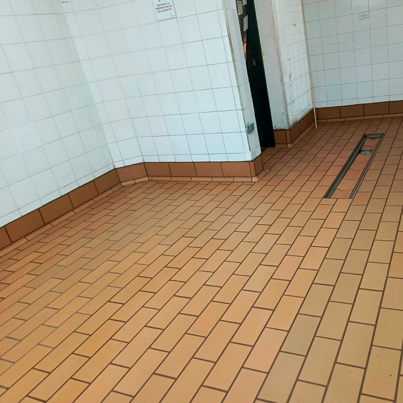 Con el fin de evitar riesgos de contaminación en la producción de alimentos, particularmente en las áreas de cocina y almacenamiento de productos perecibles, se implementó un sistema de piso industrial de gres y accesorios de selle sanitario. Este sistema constructivo fue seleccionado por su capacidad de resistencia térmica, siendo apto tanto para altas temperaturas generadas por equipos como marmitas, cocinas y hornos, como para bajas temperaturas presentes en cuartos fríos. Adicionalmente, el sistema presenta una elevada resistencia mecánica y química al lavado frecuente, condición indispensable en zonas de manipulación de alimentos que requieren protocolos estrictos de limpieza e higiene, como es el caso de la cocina del hotel.