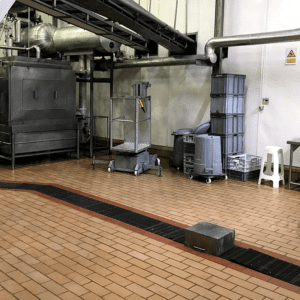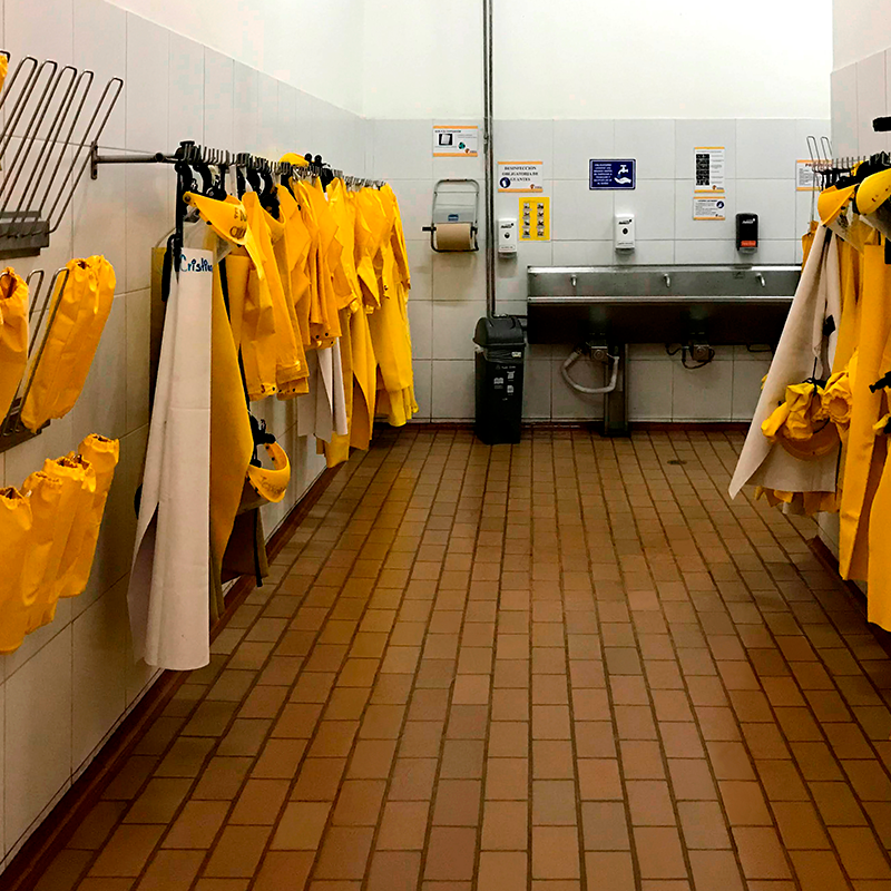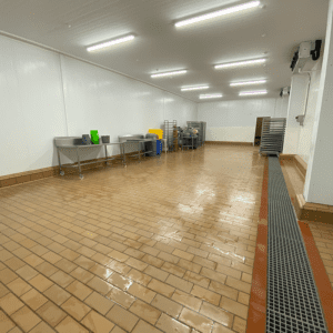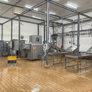 La planta industrial de Pollo Favorito S.A. (POFASA) fue concebida para el procesamiento y envasado de productos avícolas, integrando líneas de producción que exigen condiciones estrictas de higiene, durabilidad y control sanitario. El diseño de las instalaciones prioriza la eficiencia operativa y la inocuidad alimentaria, considerando la naturaleza húmeda y grasosa de los residuos propios del procesamiento de pollo. Las áreas de trabajo fueron equipadas con pisos industriales de alta resistencia, antideslizantes y de fácil limpieza, diseñados para soportar tráfico pesado, cargas dinámicas y exposición continua a agua y agentes desinfectantes. Se instalaron canales sanitarios de recolección de aguas y accesorios de selle sanitario que permiten una evacuación rápida de líquidos y residuos, facilitando las operaciones de limpieza y mantenimiento preventivo.